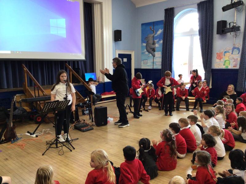 This afternoon, the whole school enjoyed a performance by our 'Rocksteady' bands. The children have been working hard to learn how to play new instruments and work together to form a band.