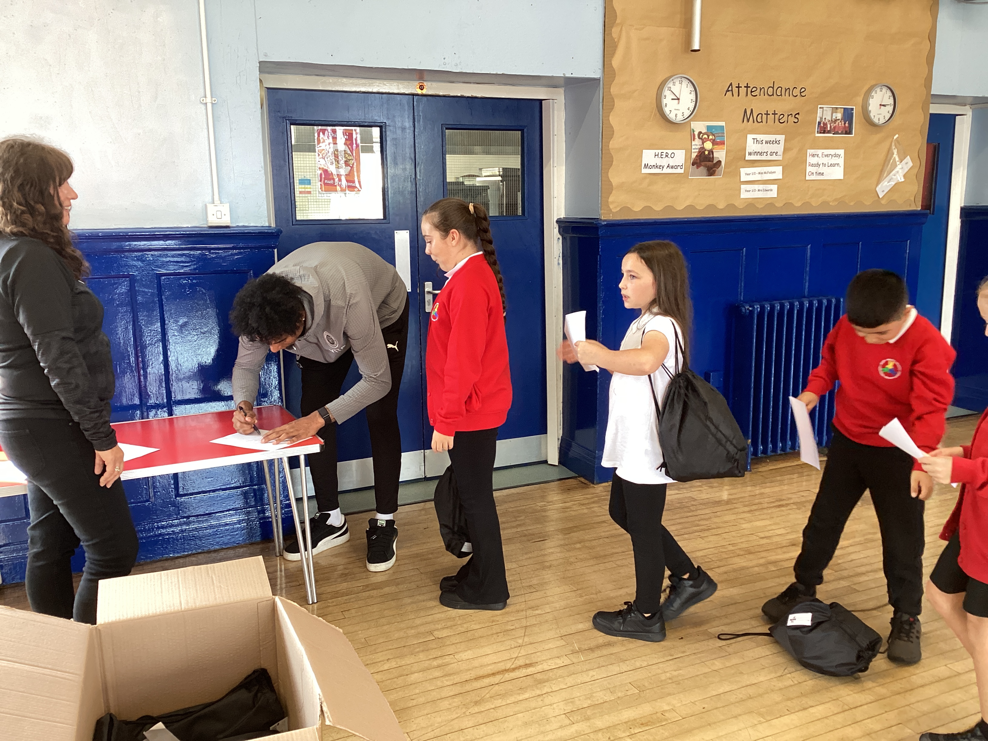 Two players visited our school to deiver the PE kits. The footage can be viewed on the SCFC website and was also share on Granada Reports!
